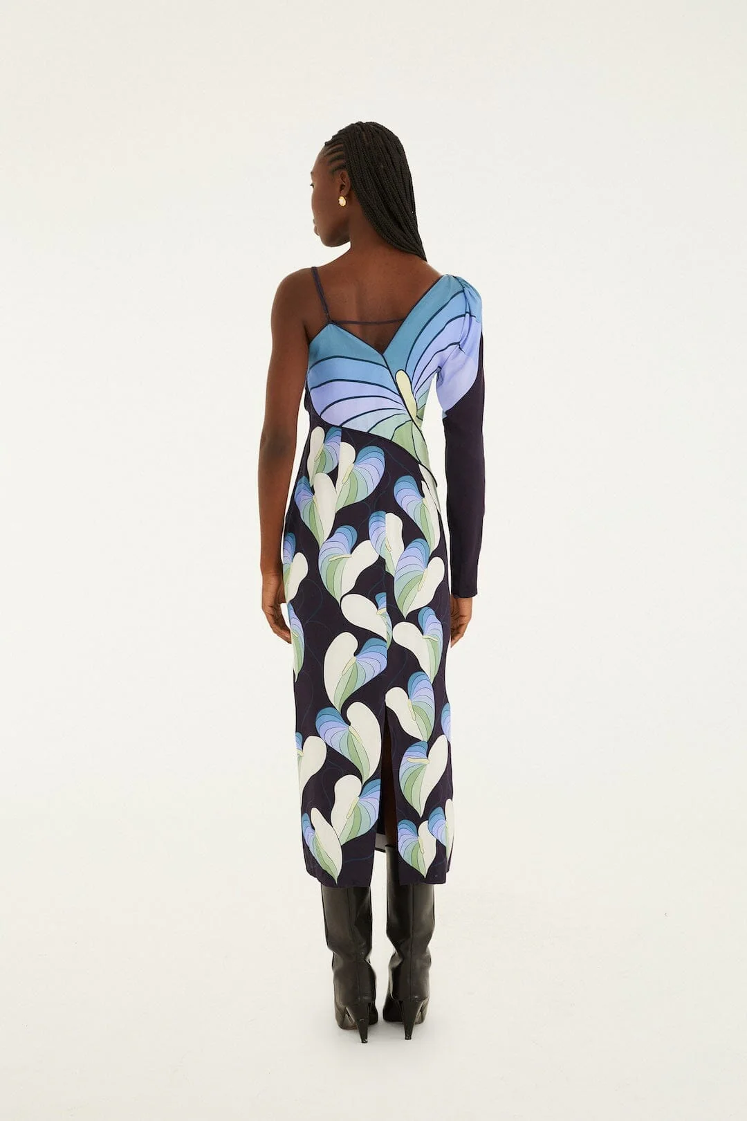 Embrace effortless elegance with the Black Lovely Anthurium One-Shoulder Maxi Dress by FARM Rio. Its asymmetrical neckline beautifully frames the shoulders, while the flowing silhouette dances with every step. Adorned with a vibrant anthurium floral pattern that pops against the deep black fabric, this dress captures the spirit of Brazilian warmth and joy. Perfectly balanced between bold and graceful, it invites playful confidence into your wardrobe.
